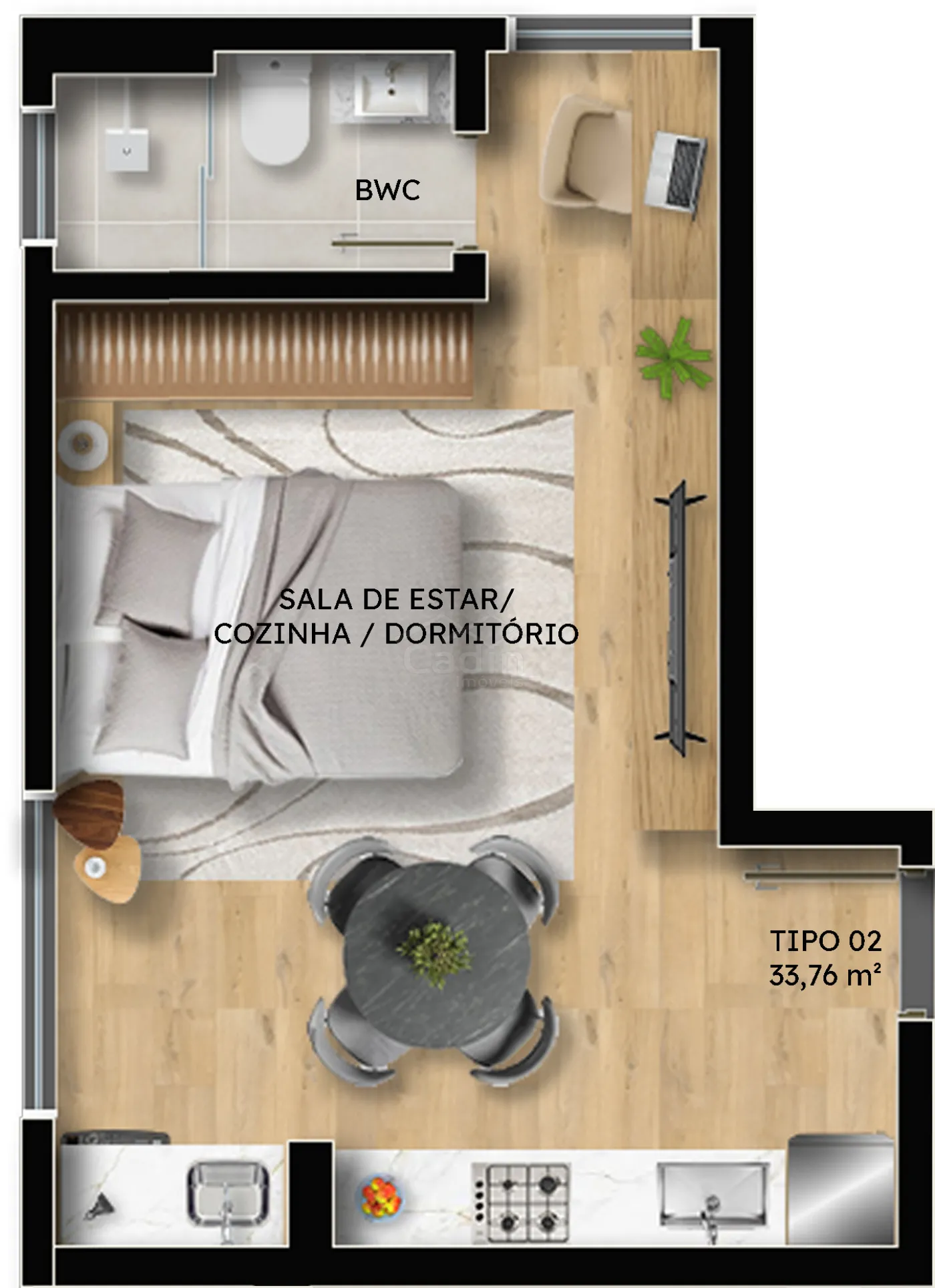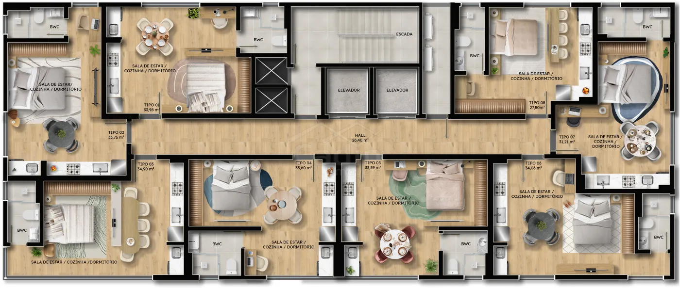 - 33,98m² de área privativa;