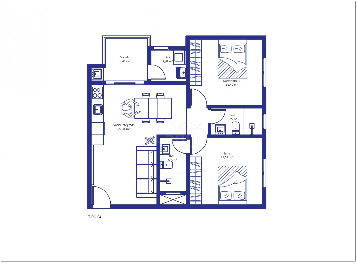 - 68m² de área privativa;