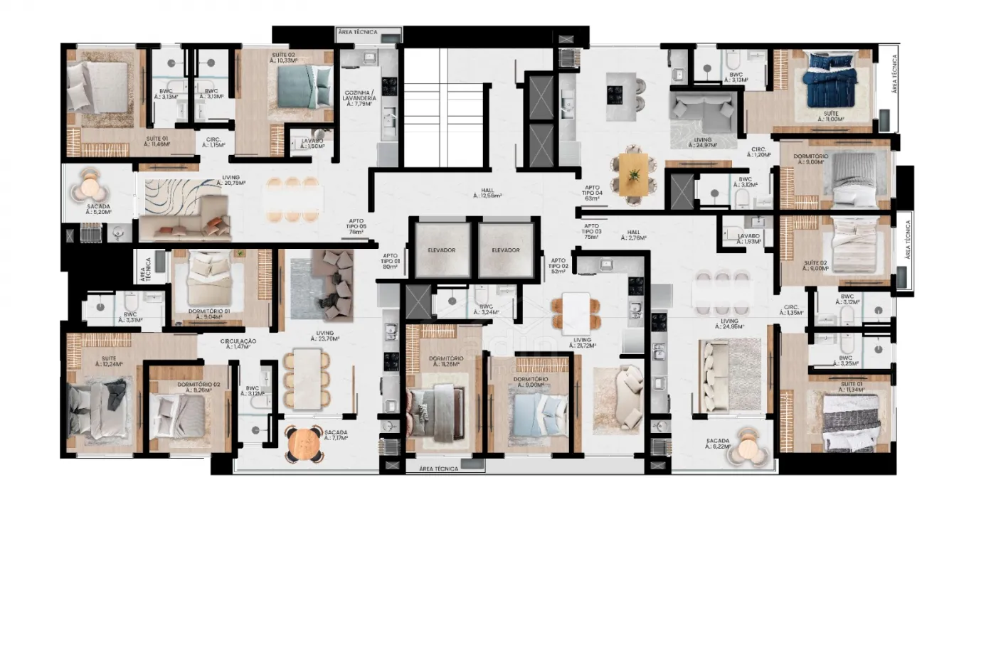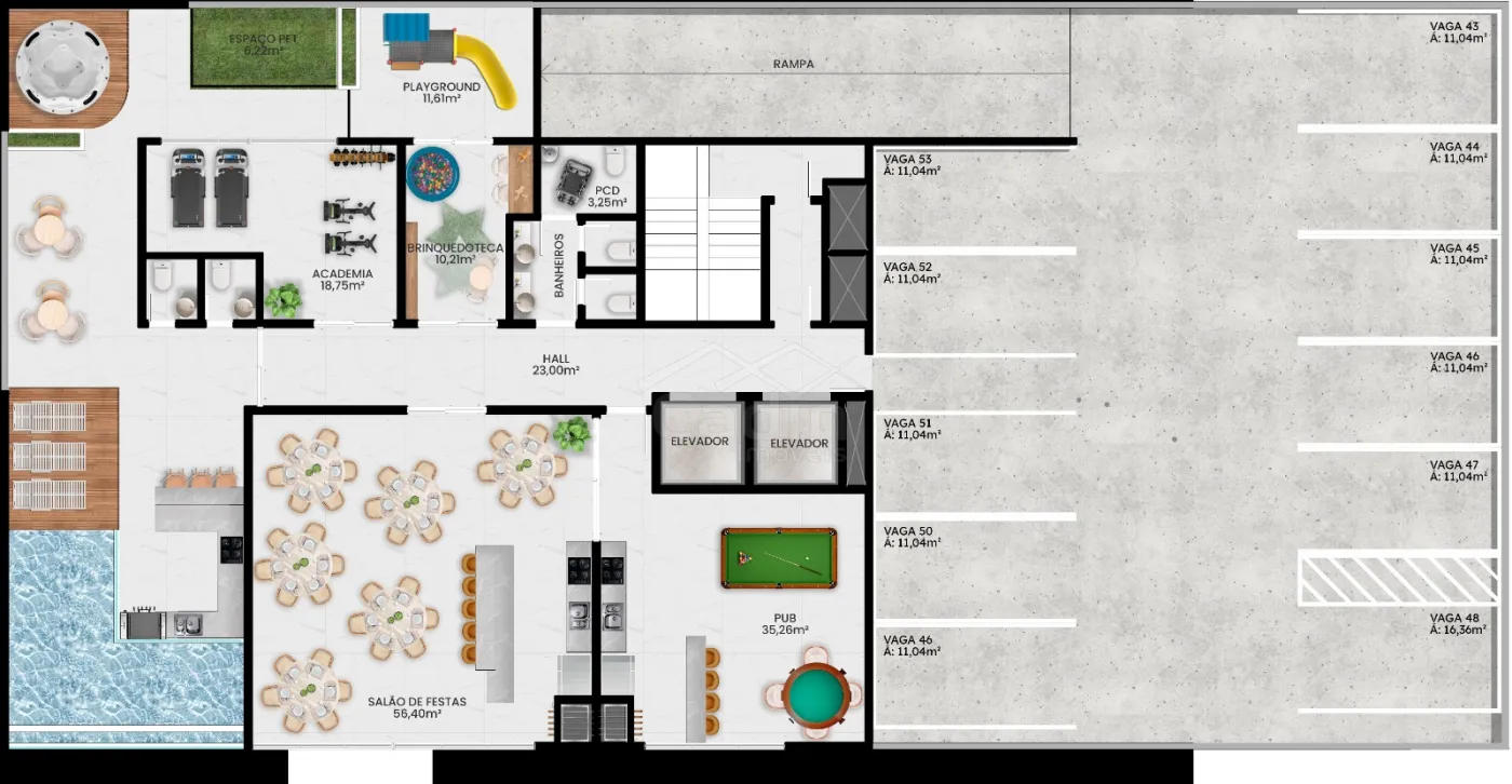 - 55,99m² de área privativa;