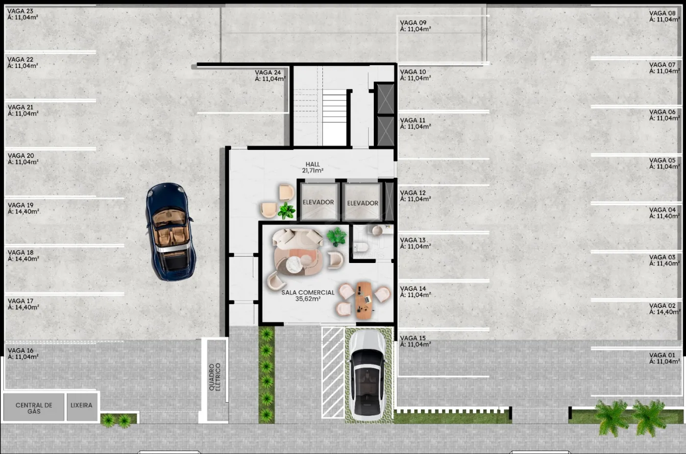 - 1 vaga de garagem coberta;