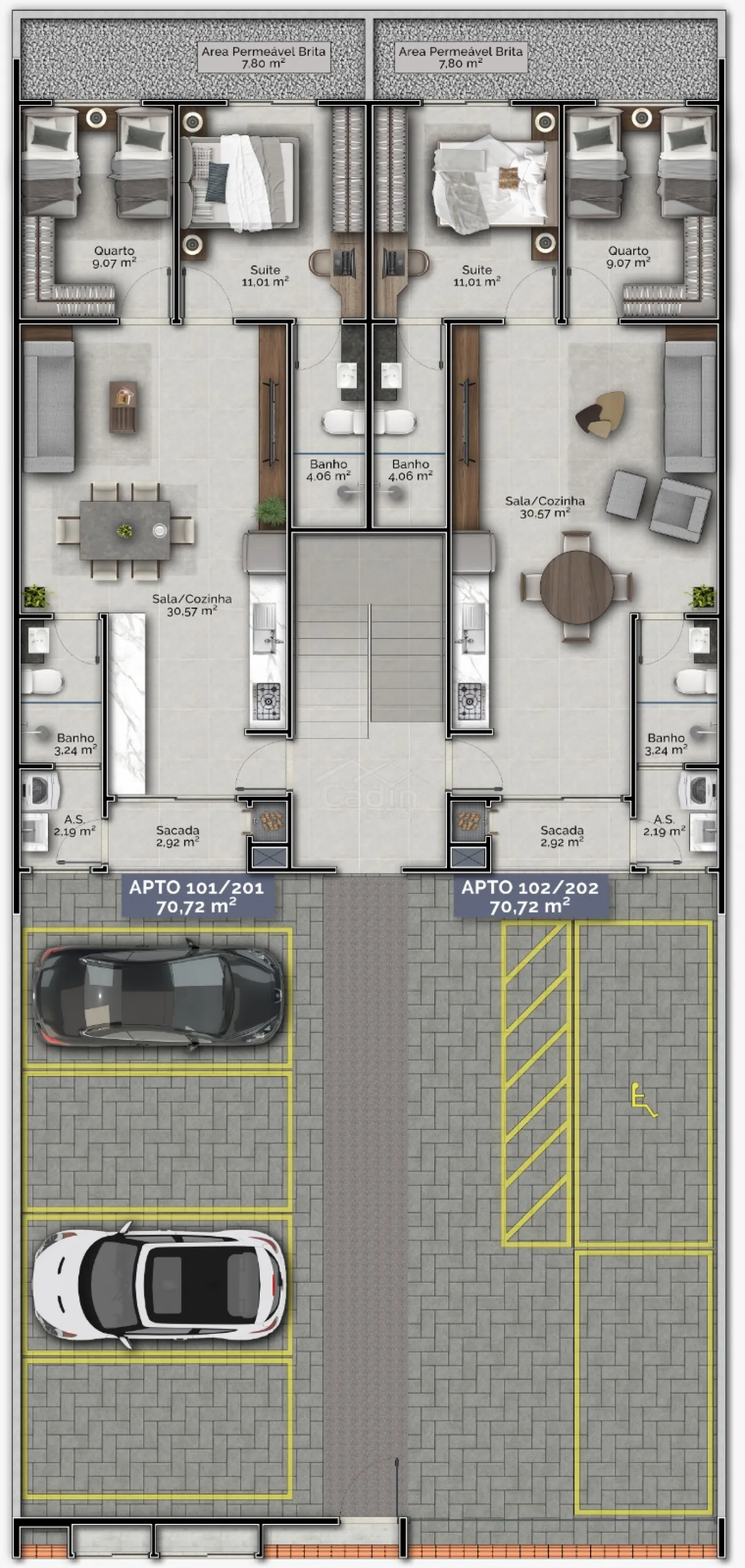 - 70,72m² de área privativa
