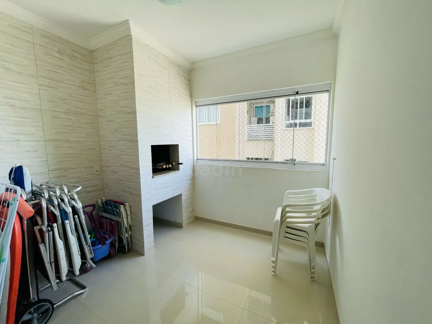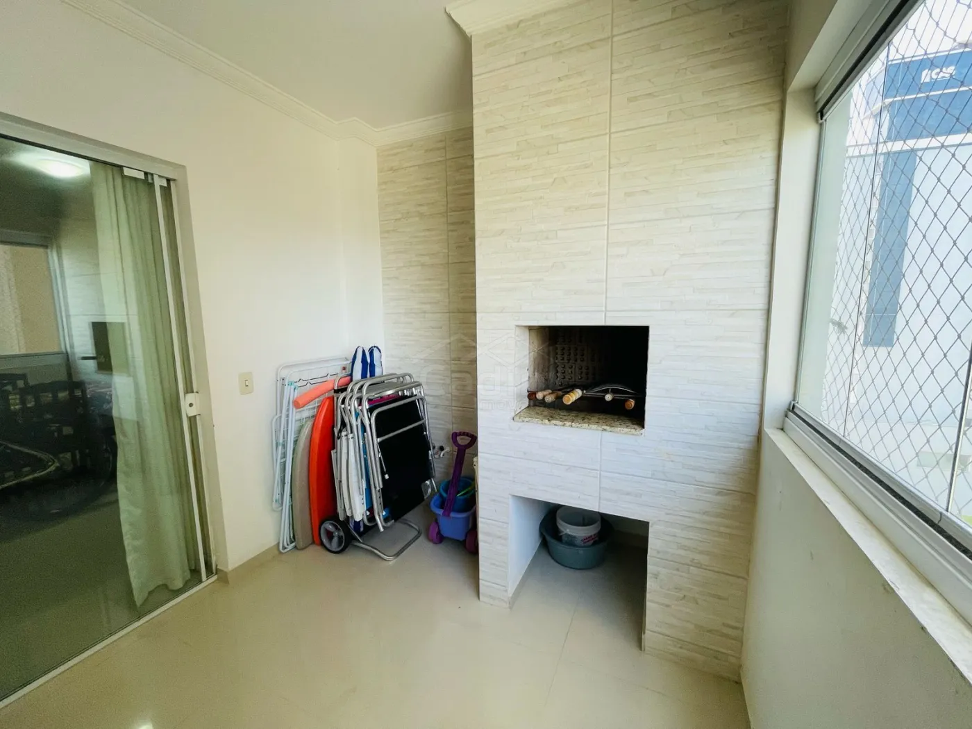 - Sacada fechada com vidro e com churrasqueira a carvão;