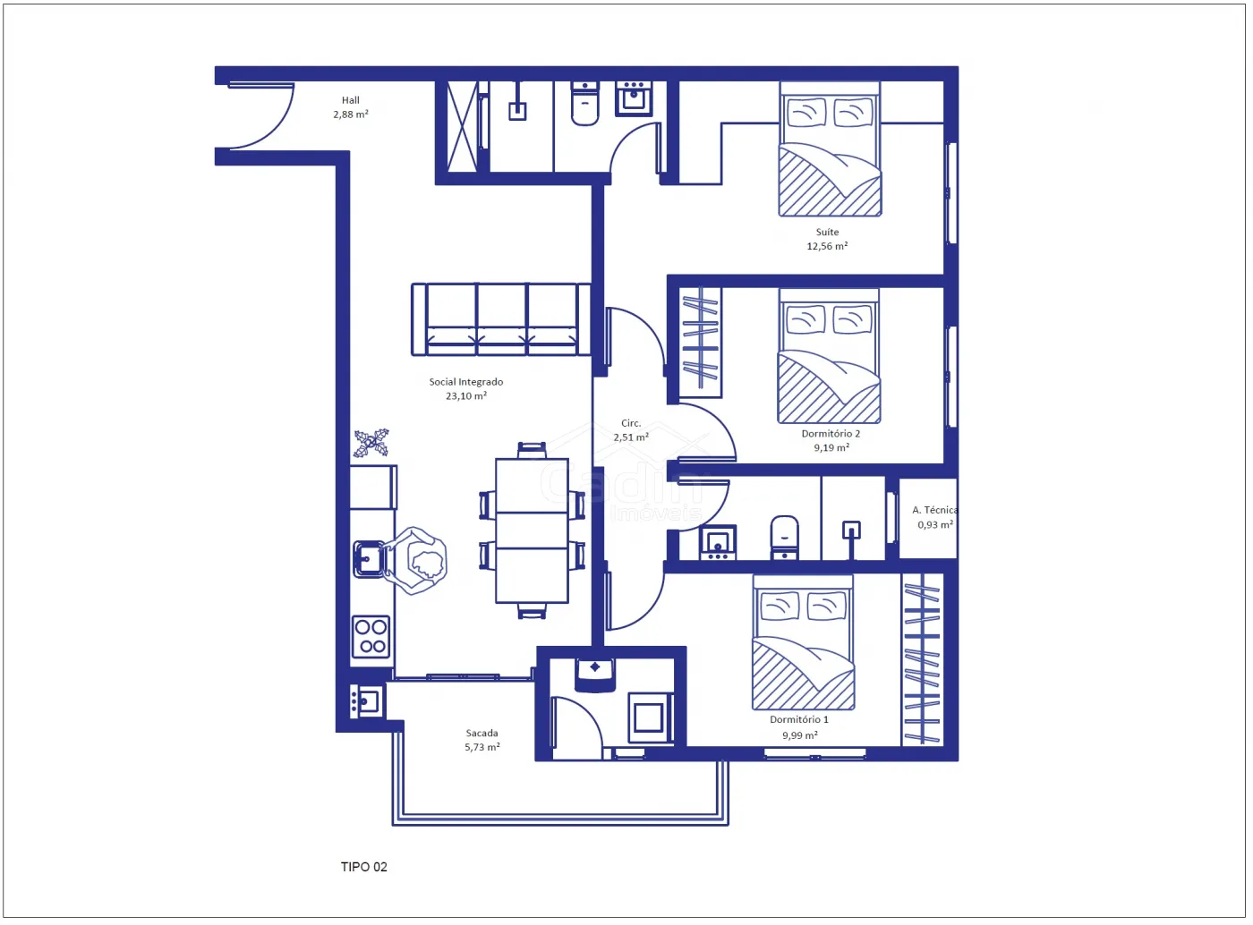 - 121,28m² de área privativa;