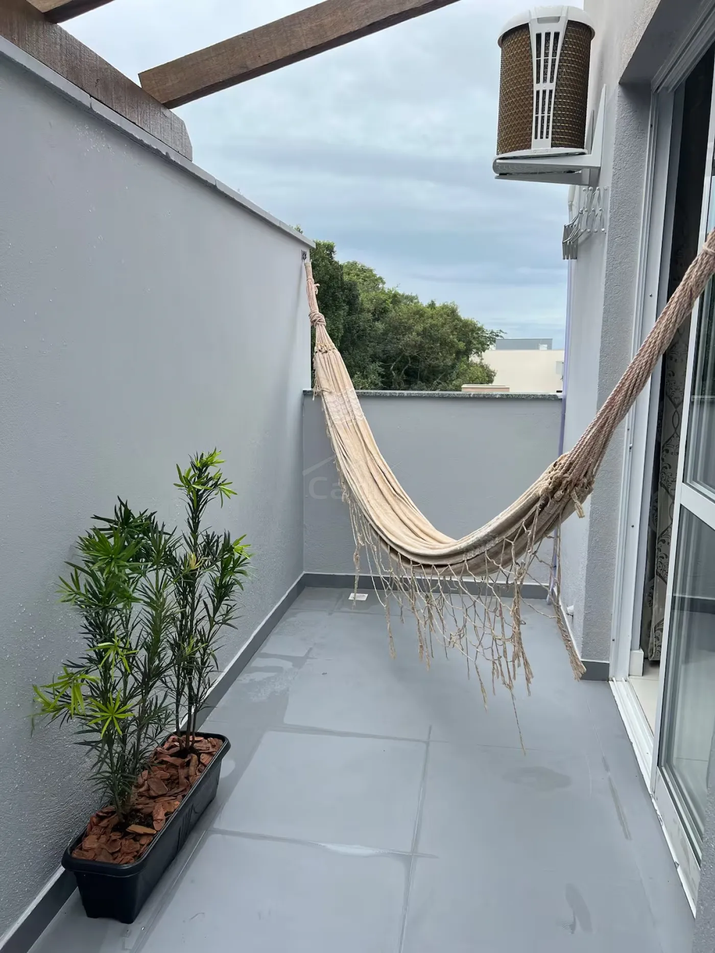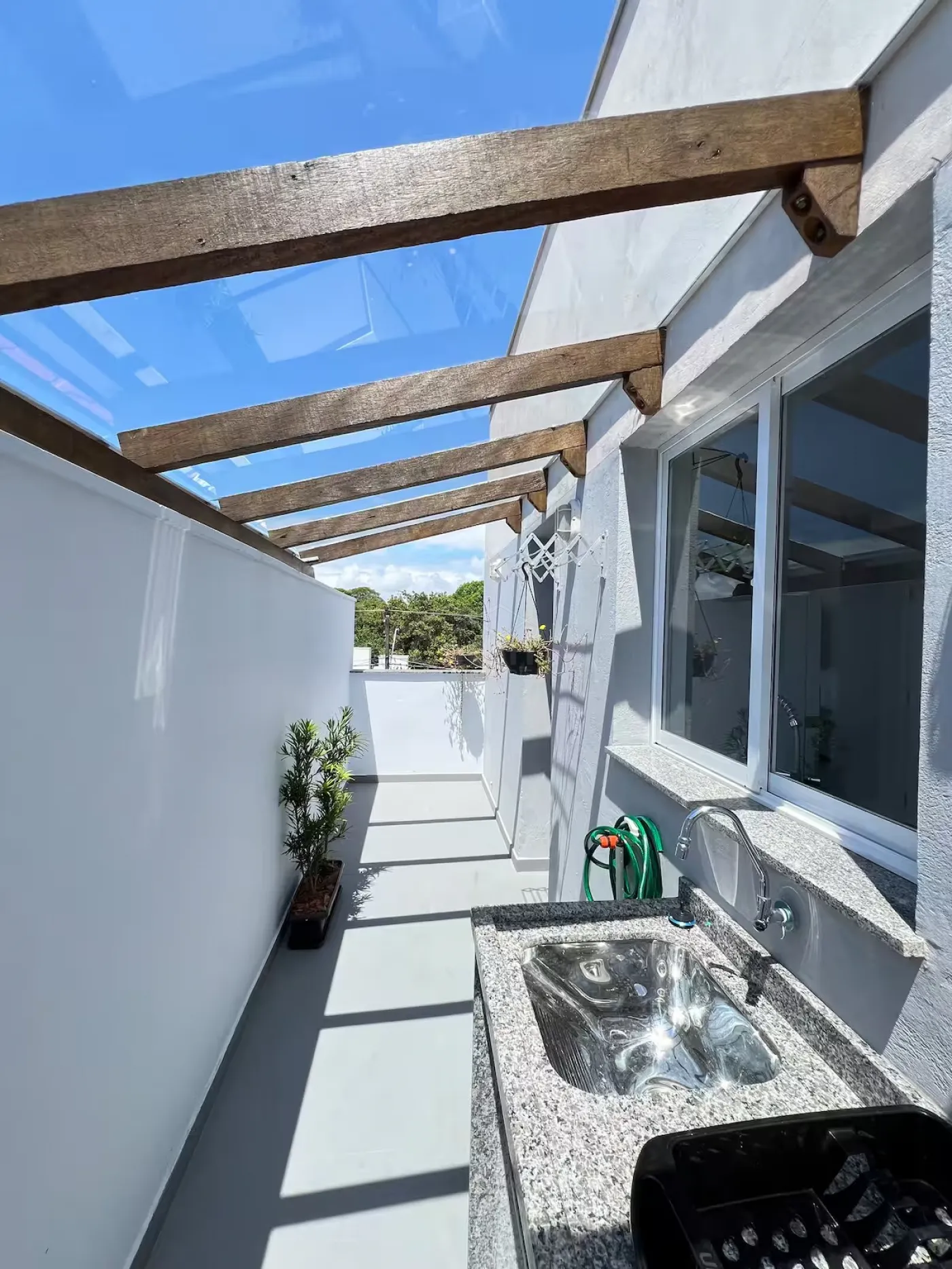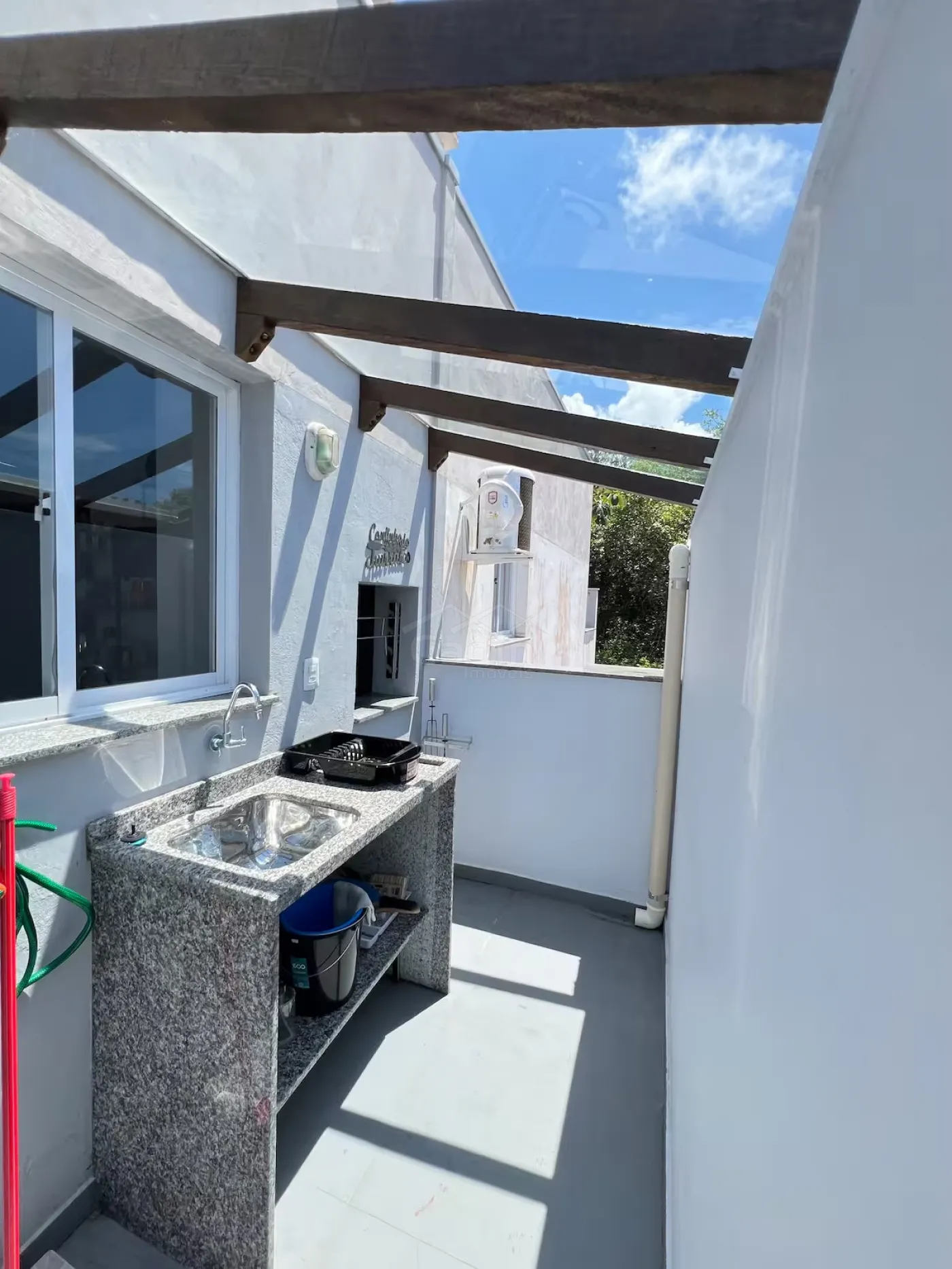 - Sacada lateral aberta com churrasqueira a carvão;