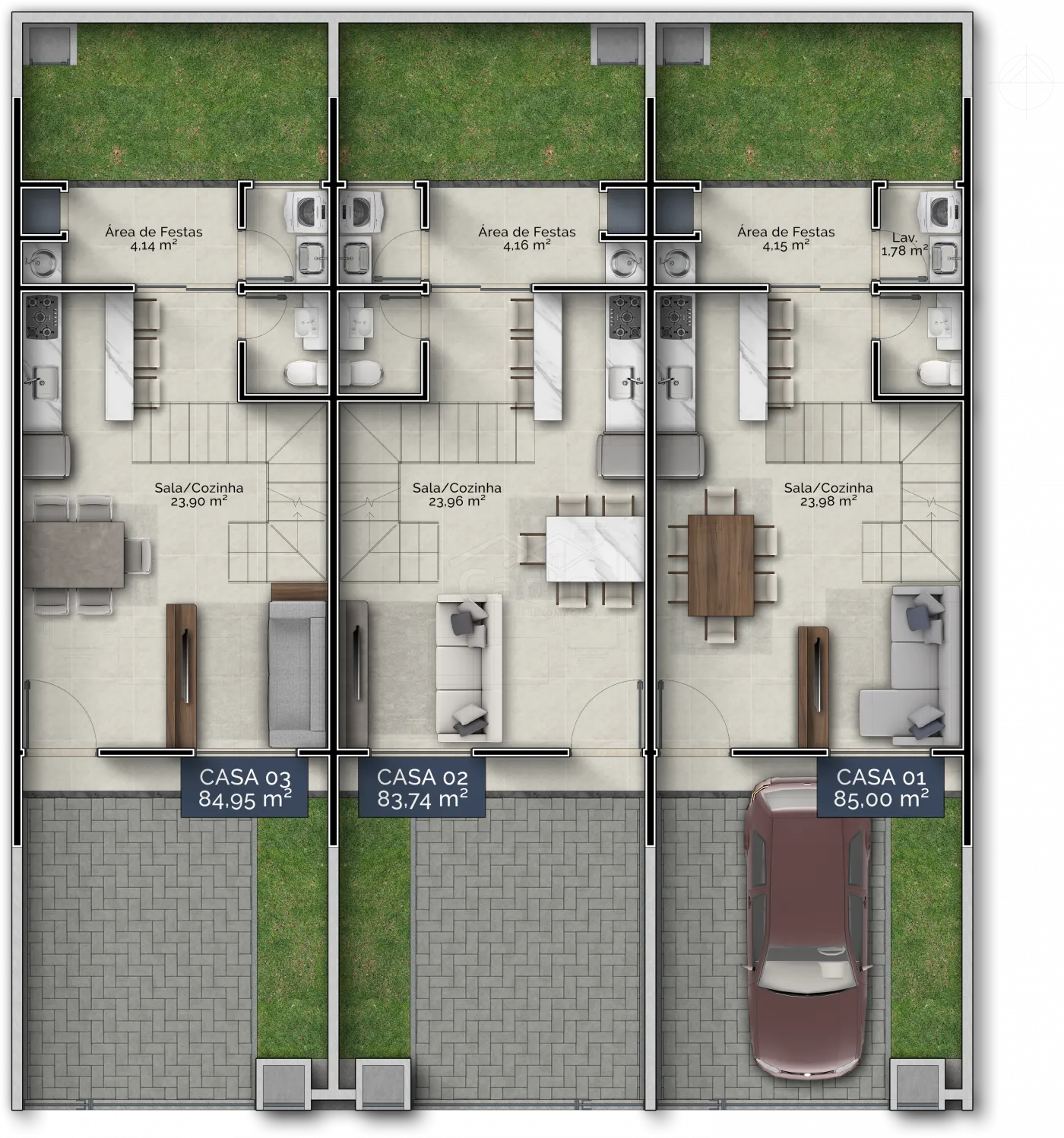 - 83,74 m² de área construída;